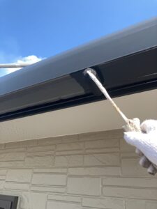 可児市土田Y様邸にて付帯部の上塗り塗装を施工しています