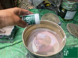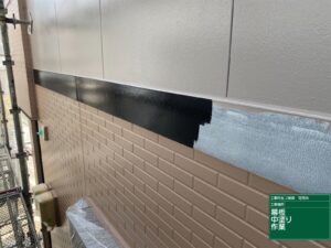 可児市土田Z様邸にて幕板の中塗り塗装です